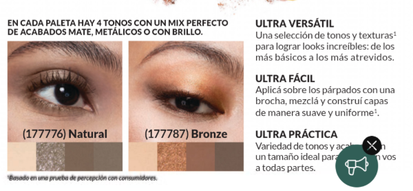 De colores naturales esta paleta es : Práctica, fácil, versátil . De cuatro tonos mate y brillantes, para que puedas combinar y crear más tonos